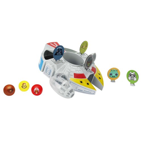 VON HASBRO INC. Der urkomische Startspaß von Angry Birds trifft im Millennium Falcon Bounce Game auf die intergalaktische Großartigkeit von Star Wars! Steigen Sie ein und helfen Sie den Rebellen bei der Flucht und dem Sieg! Können Sie die finsteren Schweine des Imperiums vom Millennium Falcon stoßen und die Rebellenhelden ins Cockpit schleudern? Werfen Sie Ihre Bälle auf den Tisch und lassen Sie sie auf das Ziel prallen. Sie erhalten Punkte für jedes Schwein, das Sie umwerfen, für jeden Ball, den Sie im mittleren Ziel landen, und für jeden Ball, den Sie im Cockpit landen. Vögel schlagen Schweine im Millennium Falcon Bounce Game!